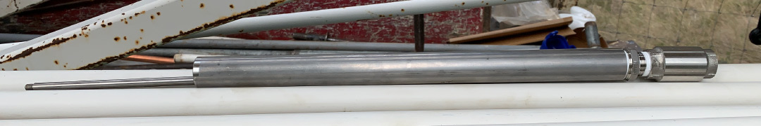 Drop pipe makes up most of the height of the pump system. All the DROP PIPE KITS (these plus top and bottom) carry water from the stainless steel pump cylinder at the bottom to the stainless steel pump head at the top.